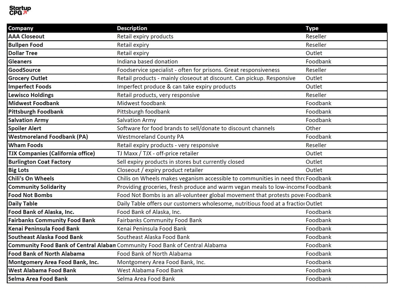 Startup Cpg S List Of Channels To Sell Or Donate Expiring Product
